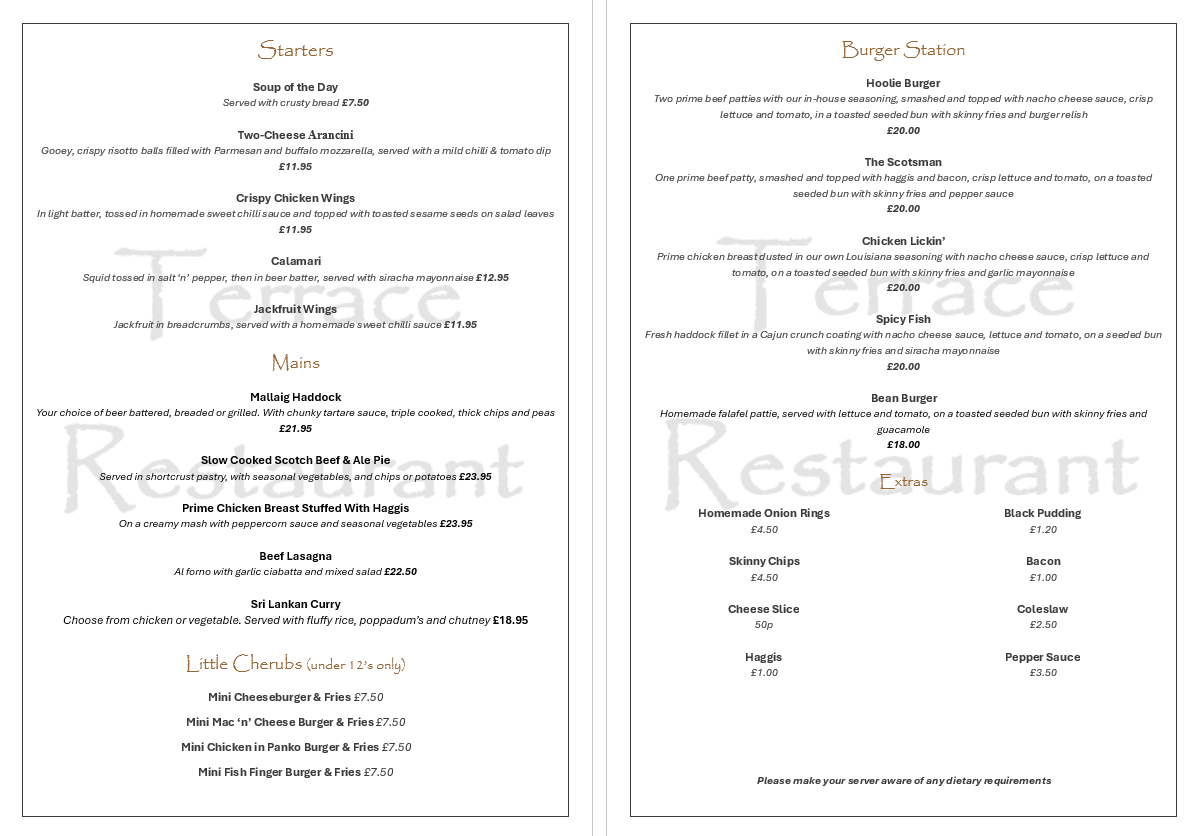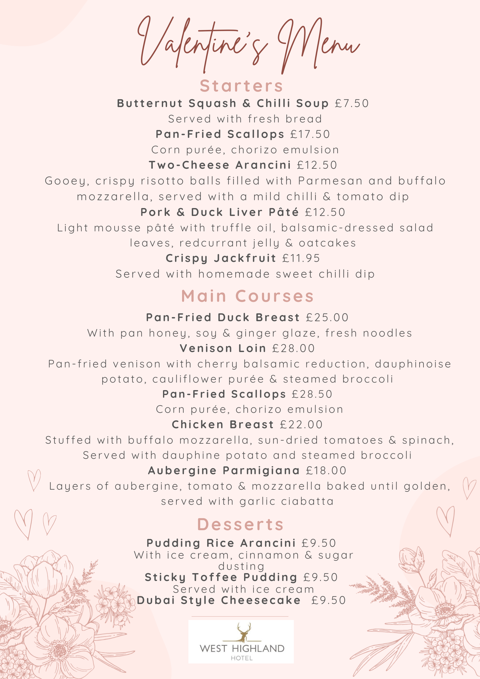 Valentine’s menu available Saturday 14th February 6pm-8pm